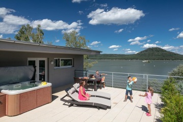 Appartement COCKPIT in der 2. Hoteletage verfügt über geräumige Terrasse auf dem Hoteldach – inkl. netter Sitzgruppe und privatem Whirlpool.