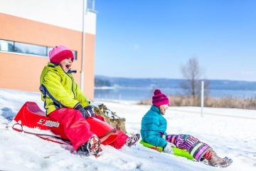 Cast your worries aside for a while – and take your kids to the winter lake. They can sled down the hill near the hotel, have fun in the pool or play badminton.