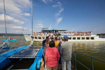 Na okružní plavby po jezeře bude od hotelového mola každou celou hodinu vyplouvat výletní loď Máj a plavby budou zcela zdarma.